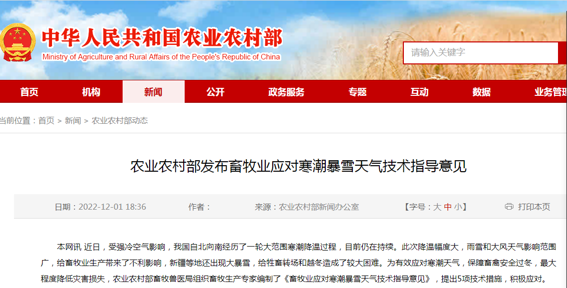 速看!農(nóng)業(yè)農(nóng)村部發(fā)布畜牧業(yè)應(yīng)對(duì)寒潮暴雪天氣技術(shù)指導(dǎo)意見(jiàn)